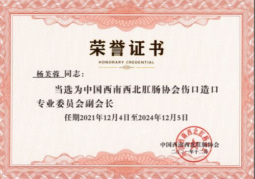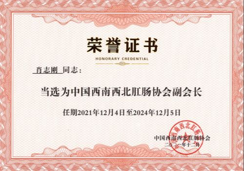 肖志刚当选中国西南西北肛肠协会副会长、杨芙蓉当选伤口造口专委会副会长。