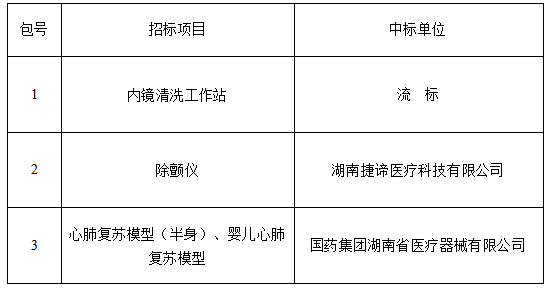 湖南省人民医院(湖南师范大学附属第一医院)内镜清洗工作站等医疗设备采购项目招标结果公示
