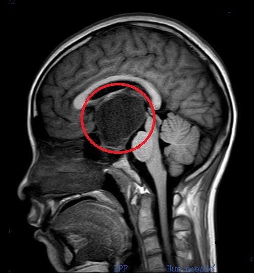 19岁的小雯(化名)是湖南汨罗人,大约2年前开始出现月经周期延长的情况,两三个月才来一次例假;近一年,“大姨妈”干脆不来了,到医院被诊断为“月经失调”。吃了医生开的药以后,来了例假;可只要停药,“大姨妈”又不来了。一个月前,她的视力变差,看手机模模糊糊,还出现头晕、头痛、恶心、呕吐、浑身乏力甚至晕倒的情况。在当地医院做头部CT发现,脑袋里长了个肿瘤!