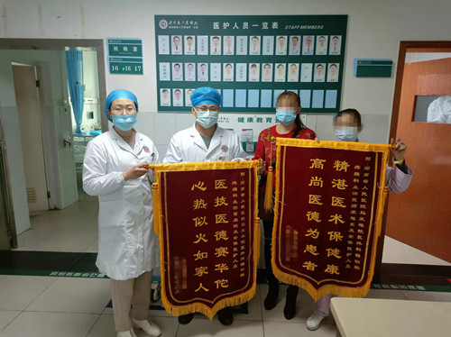 近日,湘西的唐女士托家人千里迢迢给湖南省人民医院疼痛科送来一面锦旗,感谢曹启旺主任及其团队为其缓解了让其饱受折磨的癌痛。