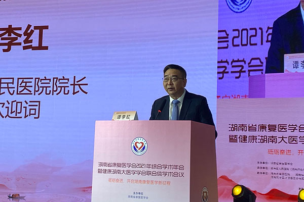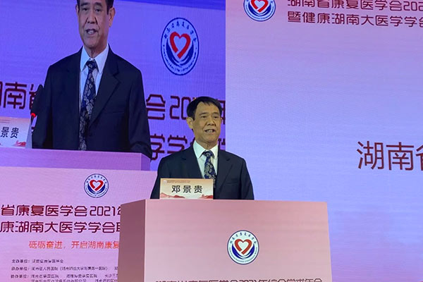 中国康复医学会会长方国恩,中国康复医学会会长党委书记牛恩喜,湖南省卫生健康委副主任龙开超,湖南省科学技术协会副主席张辉学,湖南省康复医学会会长戴爱国,湖南省人民医院党委书记唐建明、院长谭李红等领导出席会议,湖南省康复医学会党支部书记邓景贵教授主持大会。