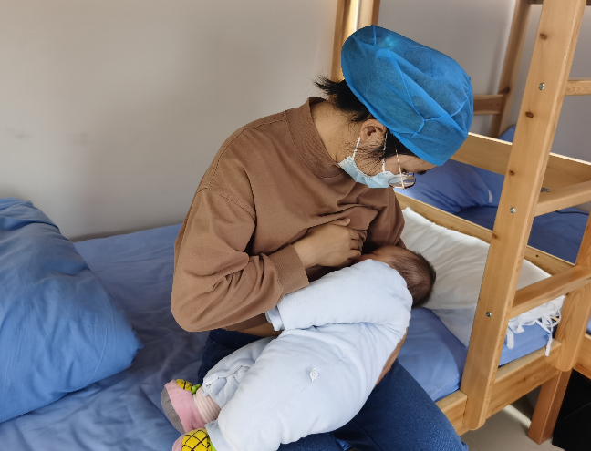 责任护士见状突然想到同事周文是一位哺乳期妈妈,赶紧叫来周文。周文立即把宝宝抱到医生值班室,当起了临时奶妈。吃饱喝足后,宝宝不哭不闹地躺在“医生妈妈”怀里,十分安逸。