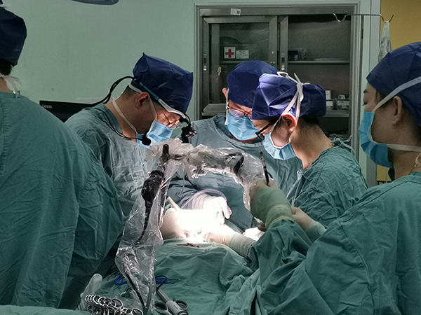 湖南省人民医院乳甲外科建科开始便开展了腔镜下手术。2019年开始以胸乳入路充气腔镜下甲状腺手术、经腋前线单孔腔镜下男乳切除术为主步入发展阶段。2021年步入免充气腔镜甲状腺手术、免充气乳腺手术的快速发展阶段,先后开展了经锁骨下入路、经腋窝入路、颈部侧切口入路等腔甲手术,以及经腋窝入路、经腋前线入路免充气腔镜下乳腺癌根治+I期假体重建手术等。