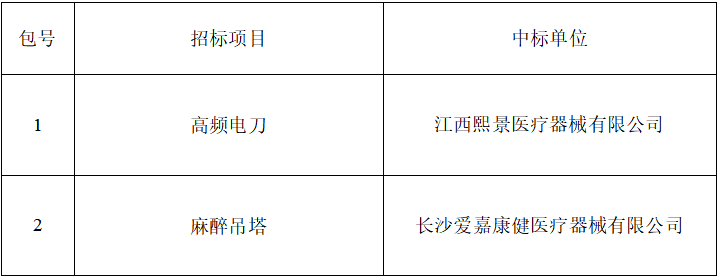 湖南省人民医院(湖南师范大学附属第一医院)高频电刀等医疗设备采购项目招标结果公示