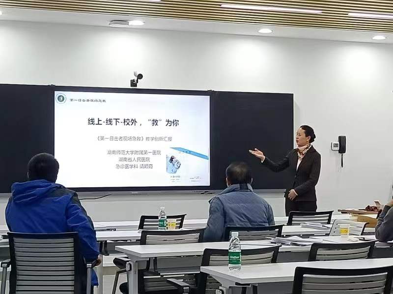该课程在2020年、2021年两个年度两次被湖南省教育厅评为省级一流本科课程(又称金课)。为该课程专门编写出版的教材《第一目击者现场急救教程》入选湖南师范大学校级规划教材。(图文: 教学部 王娟 胡进晖 急诊与重症医学教研室 刘晓亮 曹彦)