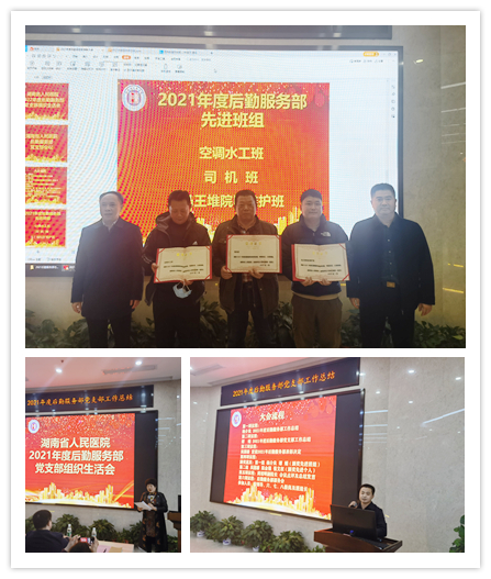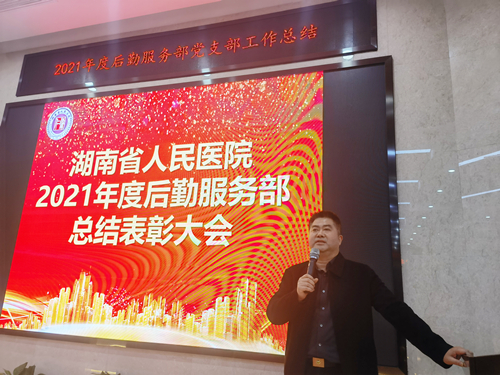 后勤服务部副主任吴国雄宣读了2021年后勤服务部表彰决定,天心阁院区空调水工班、司机班、马王堆院区维护班获得“2021年度后勤服务部先进班组”;曾云等23人获得“2021年度后勤服务部先进个人”。