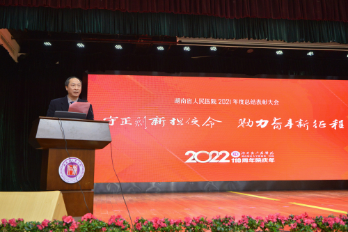 挥手作别砥砺奋进的2021,阔步迈入华章初展的2022。2022年1月27日下午,湖南省人民医院2021年总结表彰大会在大会堂隆重举行,全体院领导,获表彰的个人和集体代表,三院区周会人员汇聚一堂,对2021年进行归纳复盘,表彰优秀,共同唱响与规划新的征程。