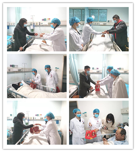 梁玉梅主任及主管医生曾清华副主任医师为患者送上新年礼物,祝他早日康复,让他及家人安心在医院过年。