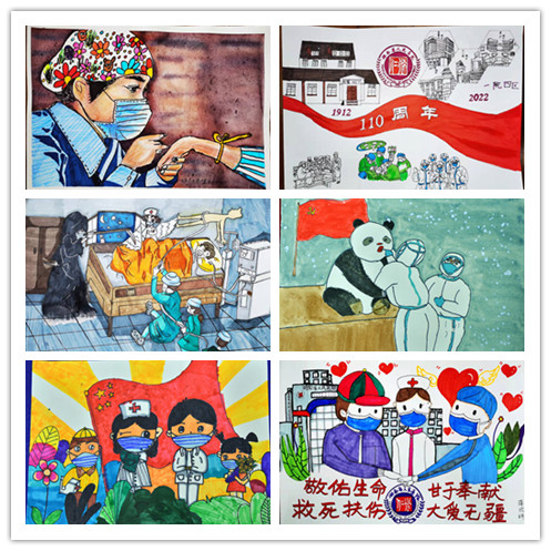 作品展现形式灵活多样,孩子们虽然年龄阶段不同,作品创作手法不同,但一笔一划、字里行间表达的都是对医务工作者的崇敬之情,对医院波澜壮阔发展历程的赞美之情。他们为抗击疫情加油鼓劲,为英雄人物礼赞称颂。