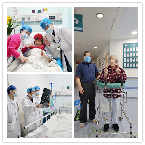 除夕夜,正是阖家团聚的时候,老人想和家人团圆的心情更加迫切。值班护士吴秀娟亲切的拉着老人的手,像家人一样陪在床边,为她抹澡、翻身,不停地安抚和劝解。春节期间,田秉璋主任带领的医疗团队仍天天查房,及时调整治疗方案。管床医生蒋海博天天为其冲洗胆囊穿刺管,防止堵管。这些精心的照护让老人的儿子看在眼里,感动在心里。2月28日,经过一段时间的治疗,老人终于能走能吃了,顺利康复出院了。