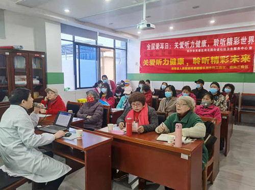 2022年3月3日是全国第23次爱耳日,湖南省人民医院耳鼻咽喉头颈外科三病区王宁主任带领医护团队,在长沙市芙蓉区荷花园社区服务中心开展以“关爱听力健康,聆听精彩未来”为主题的大型义诊活动,本次活动以开展知识讲座、现场义诊、免费听力监测周福利等形式向老百姓宣传,现场活动还邀请到了眼科二病区沙莎主任、心血管专家周艳主任一同为社区的老百姓们义诊及排忧解难。