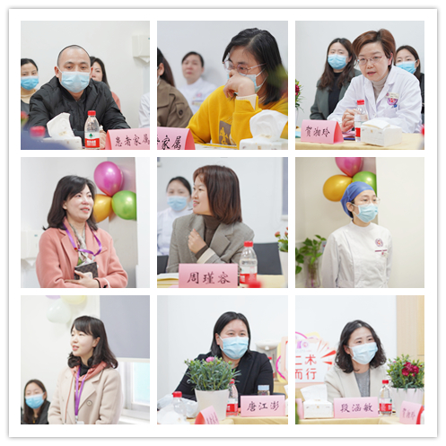 家属、医护人员、职能部门负责人及媒体代表在交流会上发言