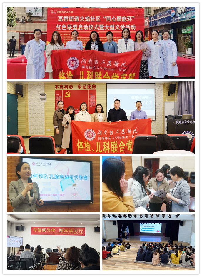 3月7日,在育才东屯小学及长郡芙蓉实验中学活动现场,乳甲二外科主任王慧玲及医师易嘉宁积极为前来参加活动的教职工讲解乳腺及甲状腺的疾病症状、预防、治疗知识。专家们一边耐心地解答大家的疑问,一边针对结节的不同症状,给予分析诊断建议。同时,活动还通过发放宣传资料等方式为现场群众进行了知识普及,让人们了解乳腺及甲状腺疾病的病因、临床表现、治疗方案等,不断提高大众对乳甲疾病的认识,进一步提高群众健康防病能力和自我保护意识。此外,现场还安排了体检报告解读、现场答疑等互动环节,受到了现场教职工们的一致好评。(健康管理二部刘峥)