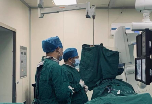 医务人员为患者进行脑血管造影术