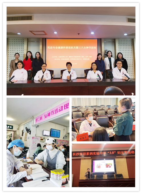 3月10日上午,妇科二病区联合民进芙蓉区工委、芙蓉区统战部、芙蓉区机关事务中心、芙蓉区妇联等部门在芙蓉区政府举办了主题为“专业健康科普进机关暨三八女神节”活动。我院社会医学部副主任邓丽、体检二部主任谈艳,芙蓉区统战部常务副部长邓春兰,芙蓉区机关事务中心主任李小平,民进芙蓉区工委副主委、区机关事务中心副主任刘彦彤,芙蓉区妇联副主席谭芳等领导出席活动。活动现场,陈春燕主任医师、唐敏主治医师、乳甲二科游硕主治医师、B超二科黄喜玉副主任医师开展女性生殖健康、乳腺、甲状腺讲座,并提供现场义诊及B超检查。部分女干部职工携带自己的体检报告进行健康咨询,义诊医生认真、细致地为前来咨询的干部职工提供专业解答。同时,在现场还发放赠送了相关女性健康检查项目活动券。据统计,活动当天共有100余人接受义诊和健康咨询,发放纪念品十余份,健康宣传折页、宣传实物、健康包百余份。