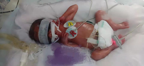 1月12日凌晨,平江县人民医院一个26+4W超早产儿瑶瑶出生了,24岁的瑶瑶爸爸,看着这巴掌大的女儿,想到贫困的家庭条件,后续的医疗费用,加上亲戚朋友们都劝说放弃,年轻的爸爸犹豫了,但这毕竟是一条小生命,瑶瑶爸爸打通了我院新生儿科接诊电话,想问问医生的意见。接到电话后,NICU接诊小团队和120迅速组队出发。凌晨的大雾考验着前进的速度,医院为小宝贝开通了绿色通道,迅速将孩子转入我院新生儿科。