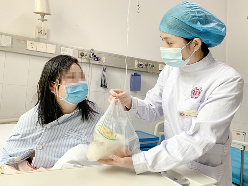 21床的熊阿姨因为手外伤生活不方便,护士每天帮她送餐,还帮她梳头,“谢谢你们,现在疫情防控工作做得好,我们住院很安心,现在不出病房就能吃到三餐,还按我们的口味来,我都不想出院了……”熊阿姨在接到热气腾腾的早餐后跟护士说。
