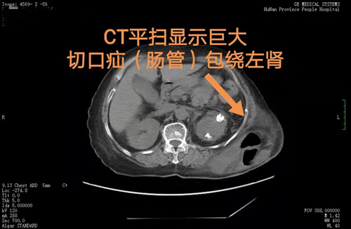 泌尿四科杨科主任介绍,何奶奶5年前因左肾感染并萎缩,在外院拟行肾切除手术,当时因手术难度大未能切除感染肾且术后并发了腹壁巨大切口疝,近年来多次求医,包括大型三甲医院就诊,一直未能得到有效治疗,慕名到泌尿外科四病区就诊,其腹壁巨大切口疝导致肠管、脾脏包绕肾脏周围,十分罕见,术前拟行左侧输尿管支架植入术备肾造瘘术的方案,术中因多次输尿管支架植入失败改肾造瘘术,穿刺造瘘如何避雷是首要考虑的问题,从术前CT来看,患者存在理论上的穿刺通道,因患者术中变动体位后,肾脏、脾脏、肠管相互挤压,穿刺通道建立难上加难,穿刺通道如何避开如肠管、脾脏、胸膜和大血管等重要的脏器,十分考验术者穿刺技术和勇气,患者精准定位完成穿刺造瘘成功后为下一步切除脓肾和巨大切口疝处理创造了有利的条件。(泌尿外科四病区 李铁求 杜丘)