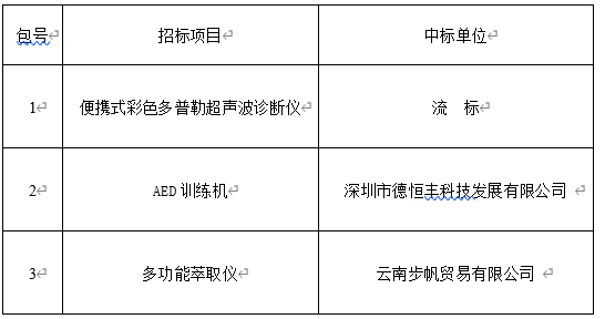 2022年03月31日,我院医学设备部在监审部的监督下,组织相关部门和专家举行招标会议,对各单位投标文件分别进行了评审,现将招标结果公示如下: