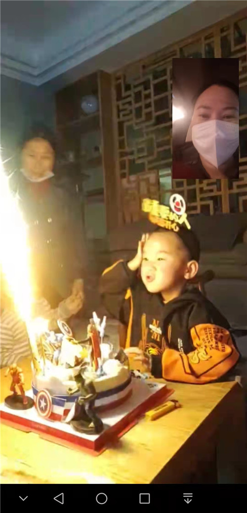 5岁的大儿子前几天过生日,肖金红只能通过视频参与儿子的生日会