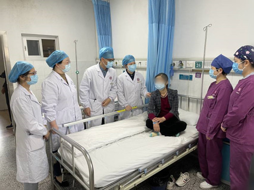 支架术后呼吸介入小组查房,患者呼吸功能明显改善,对疗效极其满意。