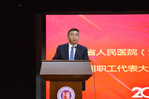 省卫生健康委党组成员、省卫生工会主任高纪平在讲话中,高度评价了全体职工为医院建设和改革发展所作的突出贡献,充分肯定了全体代表在维护医院和谐稳定与民主建设中发挥的重要作用,并就党史学习教育、医院改革发展提出了指导意见。