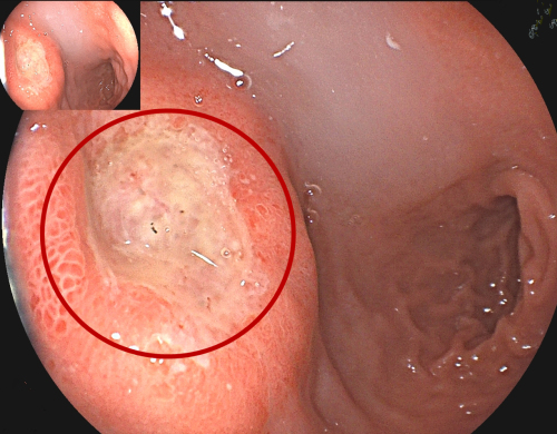 胃镜下显示十二指肠球部溃疡