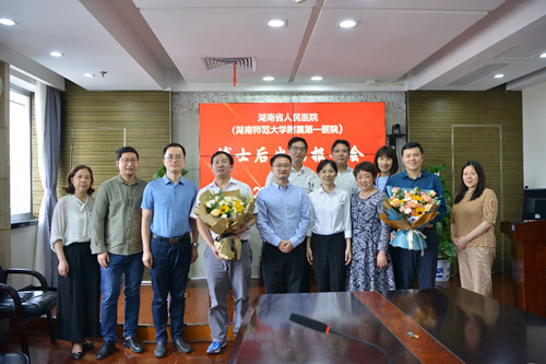 评议结束后,湖南师范大学人事处副处长饶昊代表学校对宋颖辉博士出站表示祝贺,希望医院进一步加强宣传力度,重点招收高水平大学的博士进站工作,提高博士后国际化水平,促进产、学、研的结合和转化。省人社厅专家服务中心主任许钊从组织、专家评审等方面高度评价了此次出站报告会,指出博士后工作相当重要,应把博士后工作放在人才工作首位,希望医院加大力度,吸引更多优秀青年人才,为湖南老百姓的幸福安康做出贡献。
