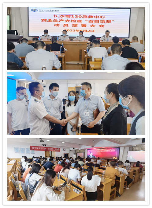 6月2日上午,由长沙市120急救中心主办,我院承办的长沙市120急救中心“安全生产大检查‘百日攻坚’动员部署大会”在我院马王堆院区门诊五楼学术厅召开。会议由长沙市120急救中心党支部书记蒋莉主持,长沙市120急救中心主任李忠、副主任刘科宇、杨璜,我院马王堆院区执行院长张超杰、综合办主任石泽亚、急诊二部主任曹彦出席会议,长、望、浏、宁区县急救中心负责人及城区急救站点负责人参加会议。