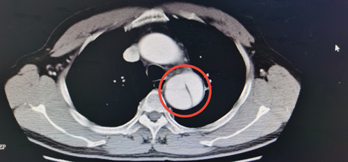 邓先生到湖南省人民医院马王堆院区呼吸内科门诊就诊时,接诊的医生通过仔细询问病情,发现问题,遂安排其进行了胸部CT检查,发现主动脉夹层,病情凶险,立即转入介入血管外科三病区救治。