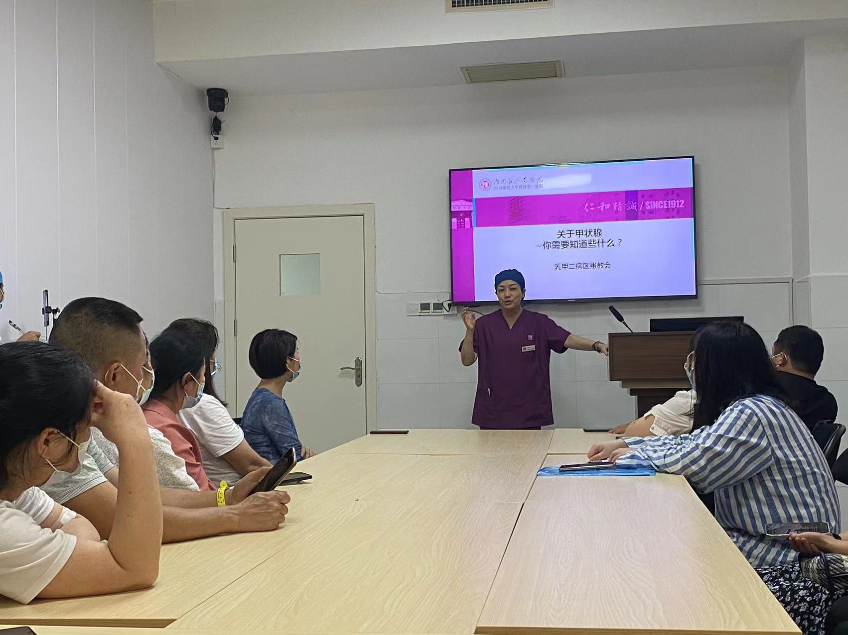 6月15日晚,王慧玲主任在科室示教室为在院的患者、家属及线上的病友、粉丝讲述《关于甲状腺你需要知道些什么》,患者及家属认真倾听,线上的“粉丝们”留言不断。