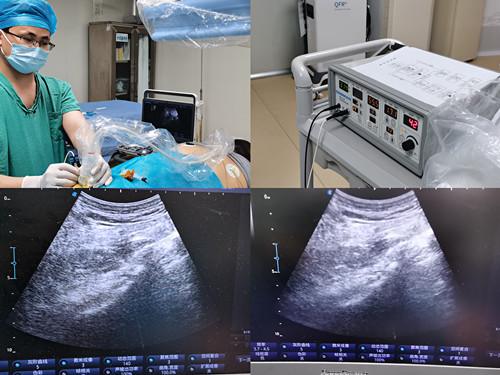 如要有效解决刘叔的疼痛问题,则需行永久植入式脊髓电刺激,但费用昂贵。考虑到刘叔的家境以及家属诉求,曹启旺主任团队为其制定了多次阴部神经射频消融术手术方案,该方案不仅能解决其会阴区疼痛,同时费用也可接受的。这是通过超声引导下将一根特制的射频穿刺针置于阴部神经表面行射频调控,达到阻止疼痛传导目的。