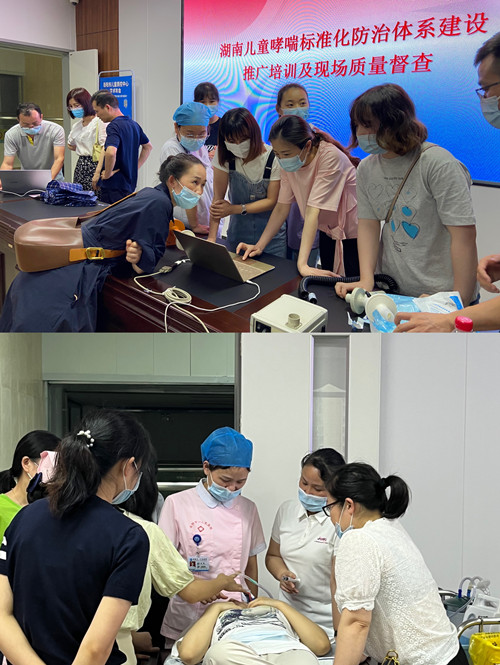 2022年6月18-19日,为响应湖南省人民政府的号召,推进健康湖南建设,加强儿科医疗卫生服务改革与发展,提升湖南省基层医疗机构儿科诊治能力,湖南省医学会儿科学专业委员会呼吸学组主任委员钟礼立教授带领湖南省人民医院儿童呼吸治疗团队黄寒教授、杨图宏护士长及技师郭纯赴岳阳针对儿童哮喘标准化防治体系建设进行推广及质量监督。