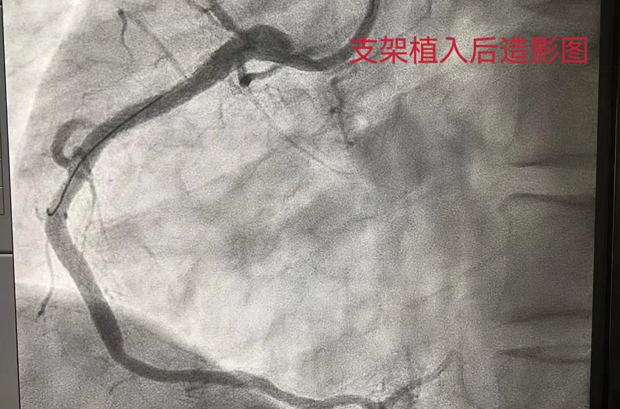 半个月前的一个傍晚,宋先生在工作中突感胸闷、喘不上气,逐渐出现胸口痛、出汗的情况,同事立即将他送至附近医院就诊,心电图检查考虑急性下壁心肌梗死,通过绿色通道转往湖南省人民医院,以最快的时间完成急诊造影,造影显示右冠状动脉堵塞,立即手术开通血管,宋先生转危为安。