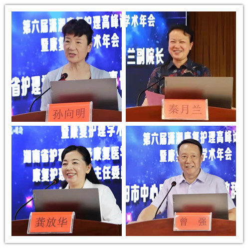 湖南省护理学会理事长孙向明、湖南省人民医院副院长秦月兰、岳阳市卫健委二级调研员兼岳阳市护理学会理事长徐伟科、岳阳市卫健委医政医管科副科长兼岳阳市护理学会秘书长杜艳丽、湖南省人民医院护理部主任龚放华、岳阳市中心医院党委书记曾强出席论坛开幕式并讲话,论坛开幕式由岳阳市中心医院王学明副院长担任主持。