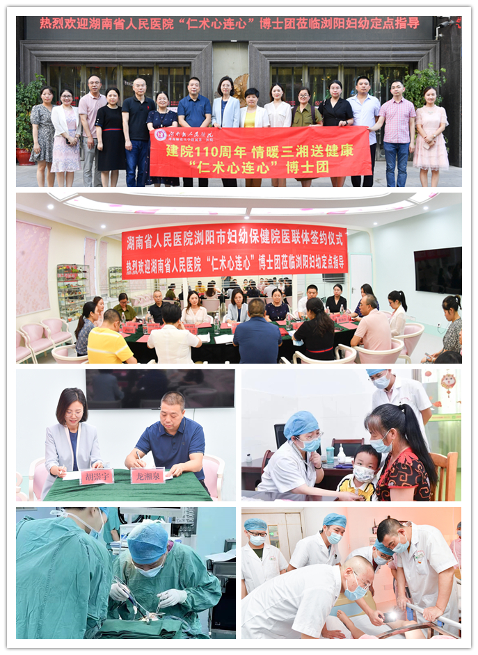 为深入推进健康中国战略,积极响应和落实国家区域医疗中心建设的重大政策,7月22日,湖南省人民医院副院长胡崇宇带队的专家团来到浏阳市妇幼保健院,开展湖南省人民医院定点指导医院续签仪式暨“仁术心连心”博士团活动。浏阳市妇幼保健院全体院领导班子及相关科室主任、学科带头人等参加活动。
