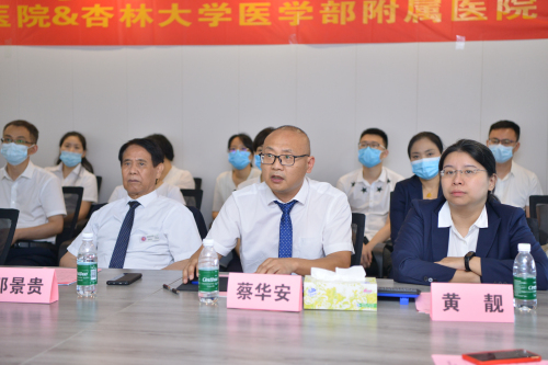 随后,双方简单介绍了各自医院的基本情况。蔡华安主任介绍,湖南省人民医院康复医学科是湖南省重点学科,拥有完备的设施系统,合理的人才梯队及先进的康复技术与理念,能全方位满足患者需求。斋藤英昭副院长介绍,杏林大学医学部附属医院成立于1970年,位于东京三鹰市新六丁目,是日本东京西部地区三多摩的核心医疗中心,是多摩地区专门的大学医学部附属医院及特定机能认定医院。