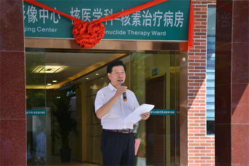 谭李红院长在讲话中表示,近年来,湖南省人民医院在改善环境、优化流程、改进服务、升级设施设备等方面做了大量工作,PET影像中心及核医学科核素治疗病房的启用,将带动核医学诊断和治疗技术达到省内先进水平,同时为医院的学科发展增添了“核武器”,助力医院国家区域医学中心建设,为三湘老百姓的健康提供更加强有力的保障。