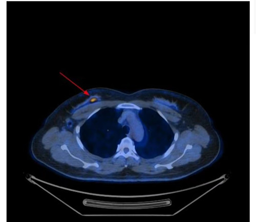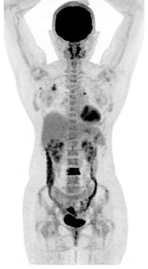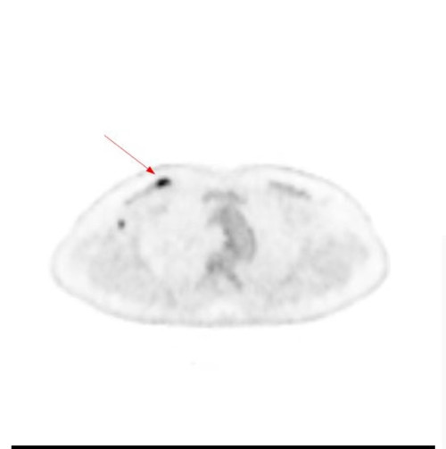 问题来了,彭女士腰椎转移癌原发灶在哪里?是甲状腺癌吗?因关系后续治疗方案,在医生的建议下,彭女士到湖南省人民医院PET影像中心进行PET/CT扫描。检查结果让人大吃一惊,彭女士的右侧乳腺有一个糖代谢明显增高的结节,大小为10mm,高度提示右侧乳腺癌。这下解开了腰椎转移癌的谜底,乳腺癌除腰椎骨转移外,同时发现右侧腋窝淋巴结和骨盆多骨的转移。目前,彭女士已经转入乳甲外科接受手术及进一步治疗。
