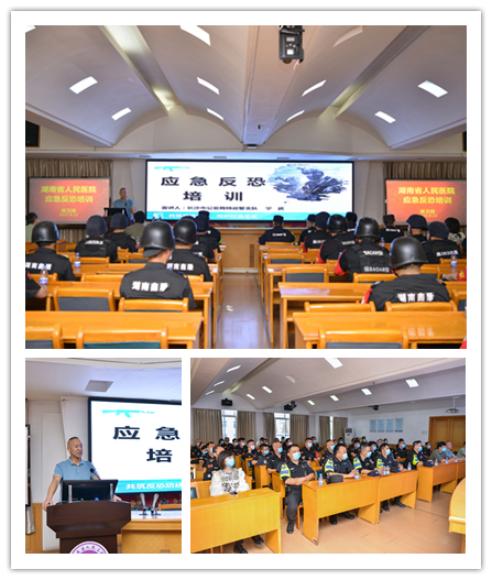 为保障医院治安稳定,提升安保人员的防恐防暴意识及处置突发事件的应急能力, 9月22日上午,保卫部组织三院区安保应急巡逻队员在马王堆院区开展应急反恐培训活动。活动由保卫部主任张志诚主持,长沙市公安局特巡警支队教员宁武主讲,长沙市公安局芙蓉特巡警大队副大队长宋坚、中队长高青松、保卫管理干部刘进、陈思卓、张辉、张卓及三院区应急巡逻队员等安保人员60余人参加了培训。