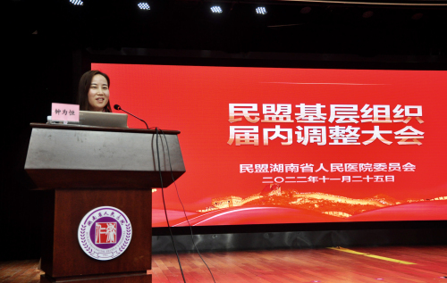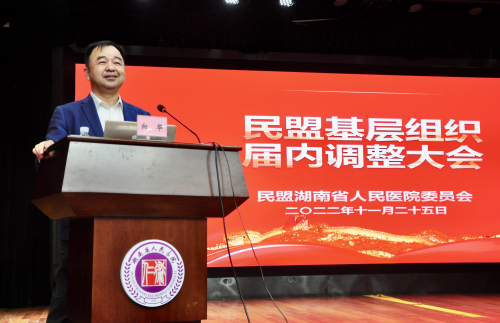 民盟湖南省人民医院第二届委员会于2021年10月换届,因主委向华今年5月已任民盟湖南省委副主委,根据组织规定,需进行届内调整。会上,向华就任期内工作进行了汇报,详细总结了自2006年成立民盟湖南省人民医院支部至发展为委员会的历程和工作成绩,回顾了担任主委十六年来的收获和体会,分享了培养青年盟员快速成长的做法和经验。他希望,新一届委员会班子在民盟湖南省委会和医院党委的关心支持下,带领盟员继承和发扬民盟的光荣传统,积极参政议政,充分发挥民主党派的积极作用。