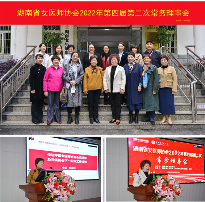 11月26日,由湖南省女医师协会主办,湖南省人民医院承办的湖南省女医师协会2022年第四届第二次常务理事会在我院马王堆院区召开。会议采取线上线下相结合的形式举行。省女医师协会会长陈亚莎、副秘书长鲁鸿安、组织发展部部长郑兰香、科普宣传部部长廖斌、副秘书长王红丽出席会议,我院党委副书记、女医师协会副会长黄利华主持会议。线上线下共计54名常务理事参加了此次会议。