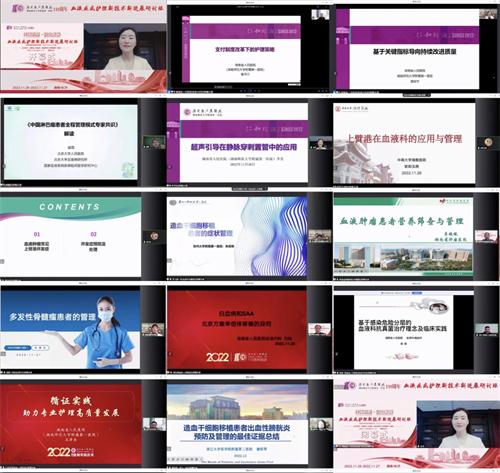 学术交流环节,湖南省人民医院副院长秦月兰、护理部主任龚放华、科研部主任石泽亚、北京大学人民医院血液科知名专家颜霞、苏州大学附属第一医院血液科知名专家朱霞明、浙江大学医学院附属第二医院血液科骨髓移植中心护士长谢彩琴、中南大学湘雅医院血液科护士长欧阳玉燕,中南大学湘雅二医院血液内科二病区护士长蒋开明、中南大学湘雅三医院血液科护士长阮春红、湖南省肿瘤医院淋巴瘤血液内科护士长李媛媛、湖南省人民医院血液内科及输血科主任周明、细胞移植病房主任刘灿、血液内科科护士长李芳等讲者分别就“支付制度改革下的护理策略”、“基于专科质量敏感指标导向持续改进护理质量”、“循证实践助力专科护理高质量发展”、“淋巴瘤全程管理共识解读”、“造血干细胞移植症状护理”、“造血干细胞移植患者出血性膀胱炎预防与管理的最佳证据总结、“上臂港在血液科的应用与管理”、“上臂港并发症的预防及处理”、“多发性骨髓瘤患者的管理”、“血液肿瘤患者营养筛查与管理”、“基于感染危险分层的血液科抗真菌治疗理念及临床实践”、“白血病与再障单倍体移植异同”、“超声引导在静脉穿刺置管中的应用”等主题进行了多层面、多视角、多维度精彩的授课,总结和交流了我国血液疾病护理医疗领域最新研究成果,为广大血液科医务工作者提供了一场内涵丰富的学术盛宴。