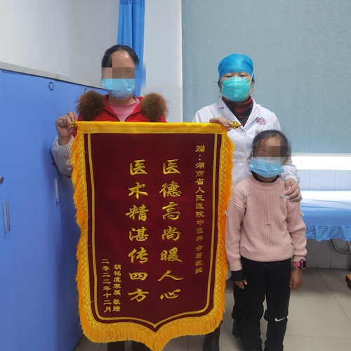 2022年12月9日下午,一名来自常德的患儿小胡(化名)和妈妈来到湖南省人民医院天心阁院区中医门诊特意为余君主任医师送来锦旗,以表达谢意。疫情期间,通过互联网医院线上问诊、门诊面诊相结合的方式,余君主任医师采用辨证论治,坚持中西医结合,中西药并用的方式,让小胡的病情好转和稳定。