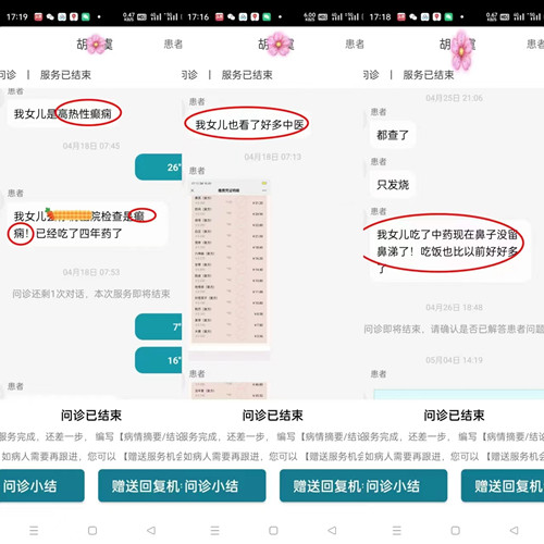 小胡是一名“癫痫”患儿,平素体弱,经常患上呼吸道感染,就算一直服用抗癫痫药物,每次发烧都引起癫痫发作。妈妈四处求医问药,在湖南省人民医院互联网医院找到了中医与中西医结合科余君主任医师。余君主任医师通过中西医结合、并用穴位贴敷、推拿外治法,使小胡病情一步步好转和稳定,小胡半年来没有感冒咳嗽发烧,也没有发作过一次癫痫。小胡一家甚是感激,特意驱车数百里当面致谢。