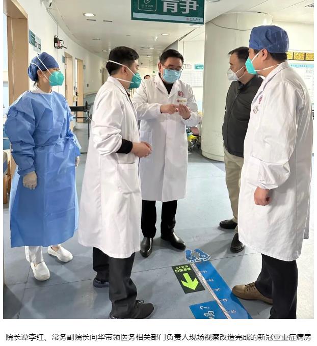 为缓解就诊压力,加速急诊病人分流,医院进一步优化收治原则,由原本的“三级分层”收治调整为“四级分层”,实现对新冠患者“相对集中、分类管理”。同时,为加快ICU床位运转效率,医院成立危重症患者管理专班,建立三级病床互转的ICU动态转运机制,形成“ICU病房—重症、亚重症病房—普通病房”相互流转机制,确保以最快的速度收治危重症患者。1月2日,新改造为新冠重症、亚重症病房的泌尿外科、肝胆外科等开始接收新冠患者。