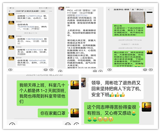 “重症救治的CRRT治疗需求越来越多,你们会成为救治生命的主力军。”随着新冠重症患者的增加,肾内学科兼血净一部护士长刘旺兴在CRRT工作群里向大家发出号召,CRRT小组应声而动、随时待命,根据救治需求,奔走在医院的各个角落,为新冠危重患者保驾护航。