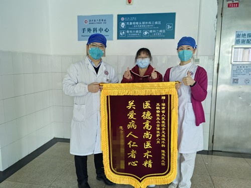 “陈主任,真心感谢您,如果没有您和您的团队,只怕如今我只能坐在轮椅上,感谢您用高超的技术保住了我这条腿。”近日,长沙的周女士在出院一年后,到湖南省人民医院骨科六病区(手足显微外科)复查。迈着还不太熟练的步伐,周女士为骨科六病区医务人员送来了锦旗。