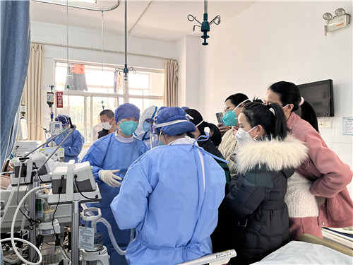 在新冠病毒感染高峰期,危重症患者随之增加,康复一病区在医院统一部署下,在科主任方翠霓、护士长张付秀的统筹安排下,第一时间与呼吸五病区转型为阳性重症病房,设重症床位59张,院区重症床位得以快速扩容,最大限度收治新冠患者,为重症患者的医疗救治提供保障。