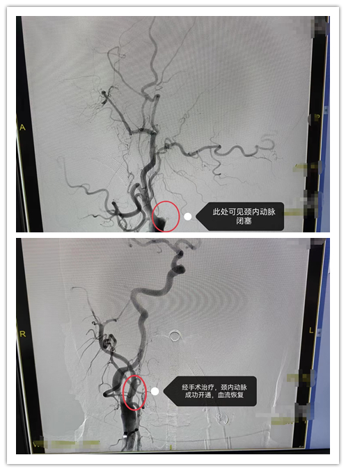 家住长沙市的72岁孔大爷在新年第一天在家吃团圆饭时突发脑梗死,家里人急忙拨打120急救电话将孔大爷送往湖南省人民医院马王堆院区急救。经检查发现,孔大爷是颈内动脉闭塞导致的脑梗死。神经内科周文胜主任医师团队立即制定治疗方案,于1月22日为其在全麻下实行颅内支架机械取栓术。术中,神经内科周文胜主任医师、周芝文副主任医师为患者成功开通堵塞血管。术后,患者病变血管血流较术前有明显改善,恢复良好。